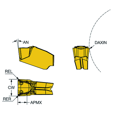| ap 1.1 mm (0.4 - 2) fn 0.15 mm/r (0.05 - 0.3) vc 170 m/min (240 - 135) | ||