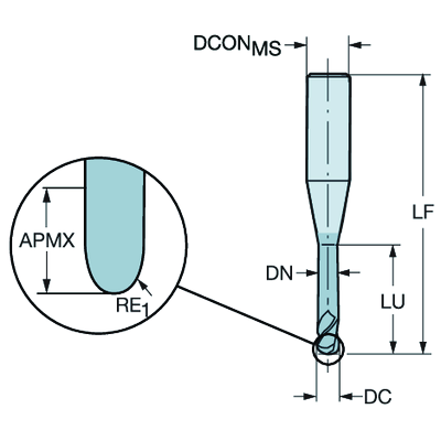 Ball nose milling cutter with straight side - solid
