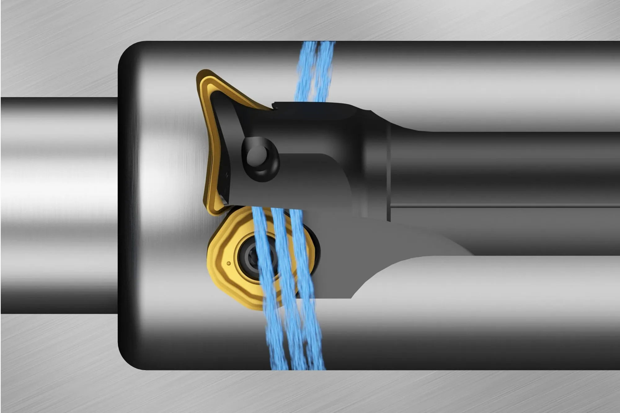 CoroTurn® PI tuo vakautta ja tarkkuutta käsittelyyn, jossa on korkeat vaatimukset ja vain rajatusti tilaa. Siinä käytetään PrimeTurning™-menetelmäämme pienillä asetuskulmilla ja monisuuntaisella sorvauksella, joita täydentää nyt tarkasti suunniteltu lastunmurtaja.