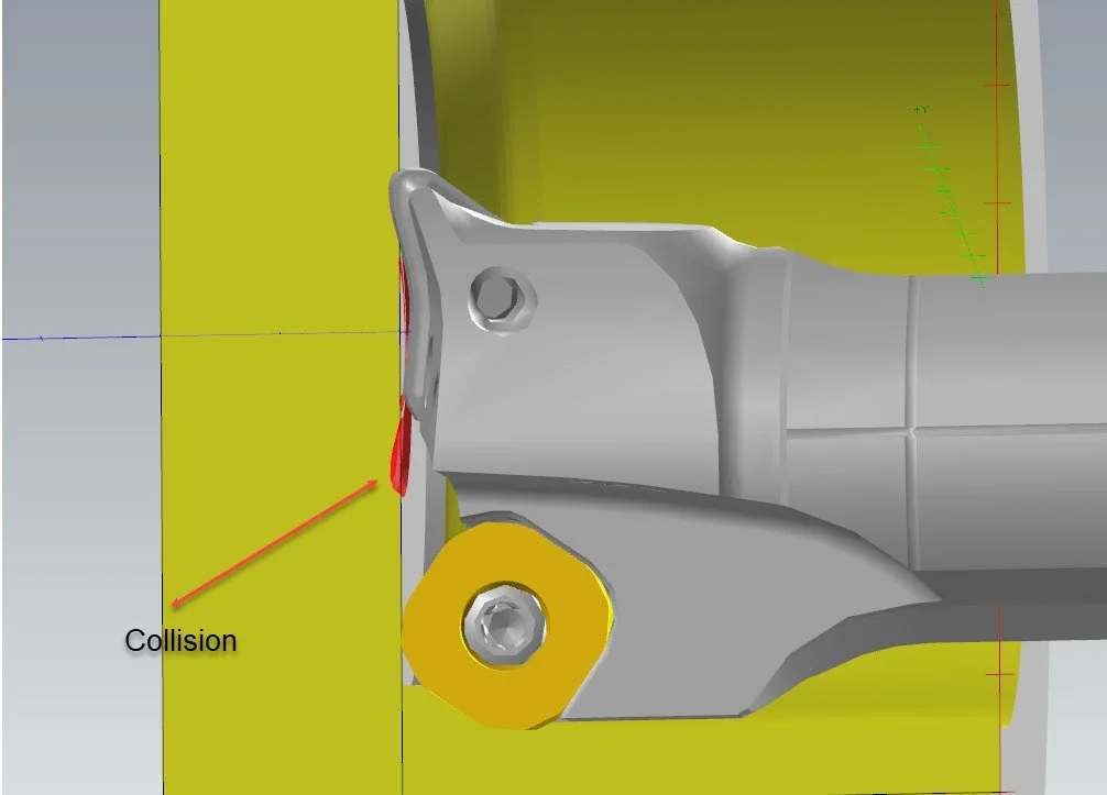 Kiinnitä työkalu siten, että viimeistelyterä on asetettu koneen liikkeen positiiviseen X-akselin suuntaan. Tämä asetus varmistaa oikean toiminnan CoroPlus® Tool Path ‑ohjelmistossa, ja sen ansiosta koneenkäyttäjä voi käyttää perinteistä työkalukompensaatiota viimeistelyterälle.