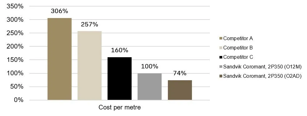 Gepatenteerde gereedschapsgeometrie voor specifieke werkstukmaterialen waarborgen dat het gereedschap presteert met hoge proceszekerheid. Nieuwe hardmetaalsoort O2AD maakt een langere levensduur mogelijk*, door het reduceren van het aantal gereedschapswisselingen en het volume van het hardmetaalgebruik.