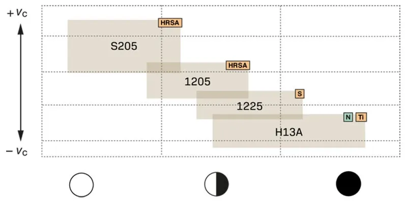 H13A: Dobra odporność na ścieranie i udarność połączone z ostrą krawędzią. Do obróbki materiałów nieżelaznych i tytanu.