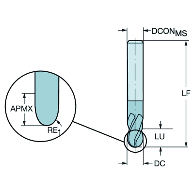 Fullradiepinnfräs med rak sida – solid