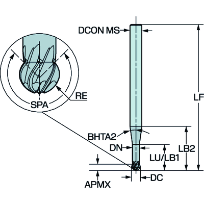 Ball nose milling cutter with radius side - solid