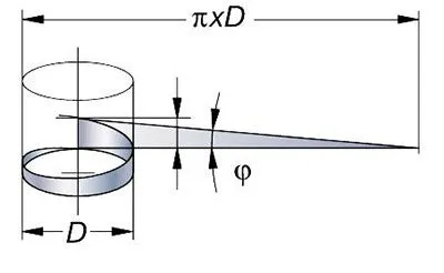 φ = 螺纹的切入角 (螺旋角)